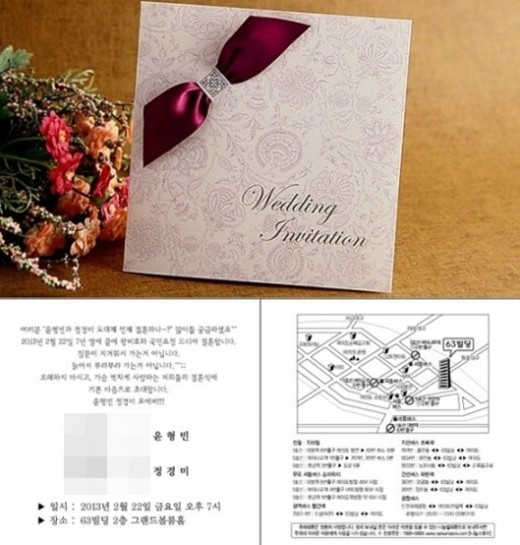 청첩장 업체 이츠카드는 29일 결혼을 앞둔 윤형빈 정경미의 청첩장을 공개했다.