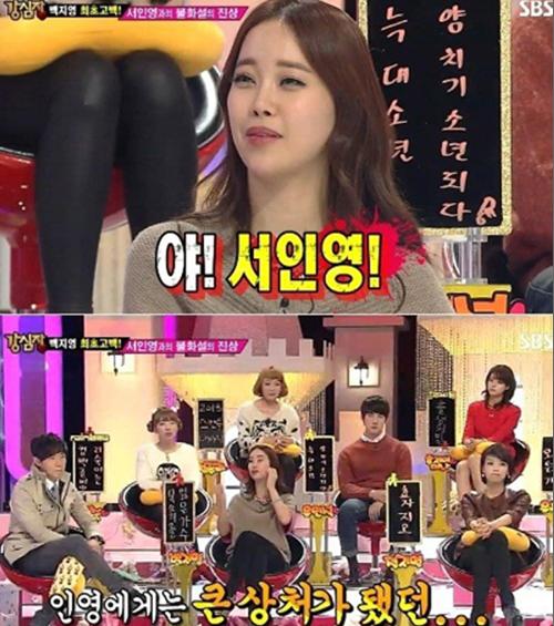 29일 방송된 SBS ‘강심장’에서 백지영은 과거 서인영과의 불화설에 대해 해명했다.