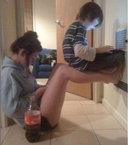 공개된 사진에는 남자가 남자를 들어올리기도 하고 여자가 다리 위에 아이를 앉혀놓고 아무렇지 않은 듯 핸드폰을 보고 있는 모습이다.
