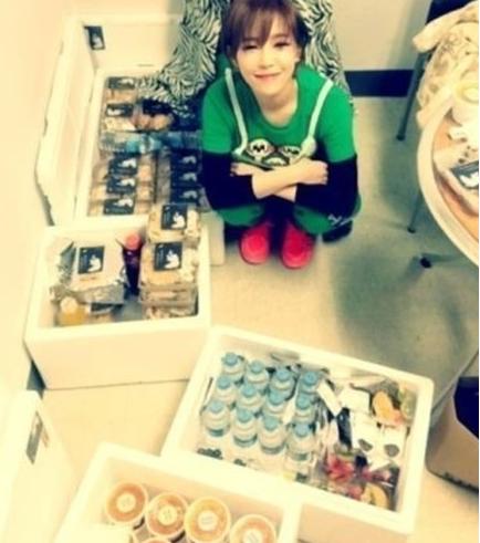 공개된 사진에는 팬들이 보낸 선물 앞에서 밝은 미소를 짓고 있는 가인의 모습이 담겨있다.