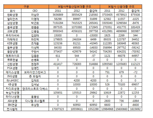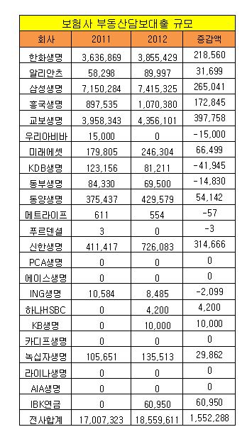 이어 교보생명은 2011년 10월보다 3천839억원 늘었고 흥국생명도 1천814억원 증가했다.