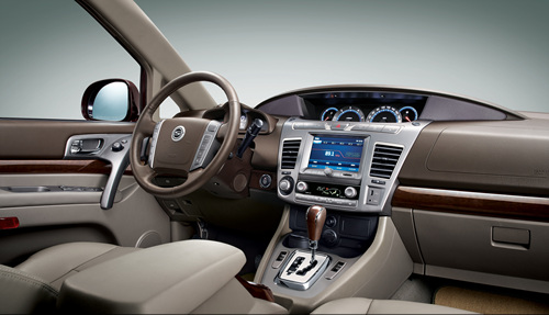 실내인테리어에서 가장 눈길을 끄는 점은 7인치 내비게이션 위 센터페시아에 자리 잡은 계기반. 보통 운전자 바로 앞쪽 스티어링 뒤에 위치한 것과 대조적이다.