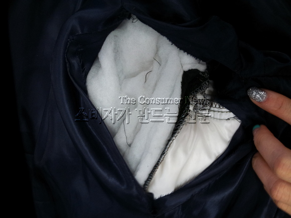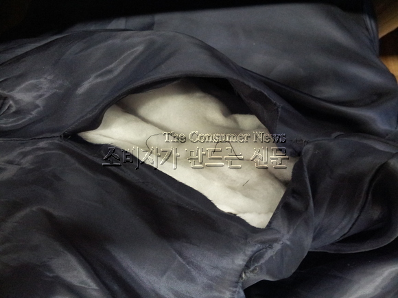 하지만 암홀쪽 안감이 튿어지는 바람에 우연히 충전재를 확인하게 된 양 씨는 깜짝 놀랐다. 내부 충전재가 오리털이 아닌 일반 솜이었던 것.