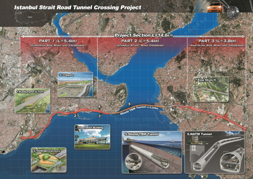 한편 이 프로젝트는 유럽과 아시아 대륙을 가르는 보스포러스 해협을 5.4km 복층 해저터널로 연결하는 사업이다. 사업기간은 총 52개월로 2017년 4월 개통 예정이며, 유지보수 및 운영기간은 공사 완료 후 314개월(26년 2개월)이다.