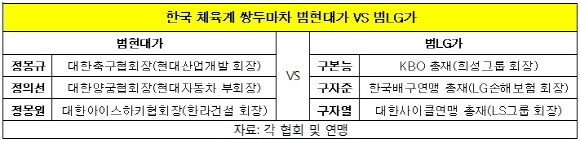 범현대가(家)와 범LG가(家)가 국내 체육계에서 막강한 목소리를 내고 있는 것으로 조사됐다.