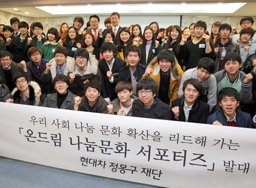 한편 이날 장학금 전달식에서는 정몽구재단 장학생 등이 주축이 된 봉사 단체 '온드림 나눔문화 서포터스' 발대식이 열리기도 했다.