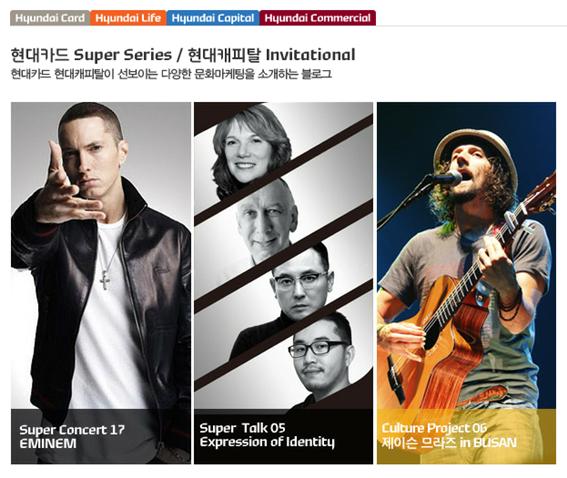 상품에 담긴 매력적이고 독특한 이야기를 문화예술과 잘 접목시키고 있는 대표적인 국내 브랜드 중 하나는 '현대카드'인데, 그들은 세계적인 스포츠스타들을 국내로 초청해 경기를 갖게 하는 '현대카드 슈퍼매치'와 비욘세, 에미넴, 레이디 가가, 제이슨 므라즈에 이르기까지 세계적으로 유명한 아티스트들의 음악을 국내에서 들을 수 있는 '현대카드 슈퍼콘서트'로 고급스러운 문화마케팅을 펼치고 있다.