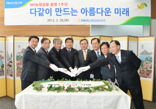 NH농협금융은 28일 농협은행 본점에서 신동규 회장과 7개 자회사 대표이사 및 주요 임직원이 참석한 가운데 출범 1주년 기념식을 가졌다.
