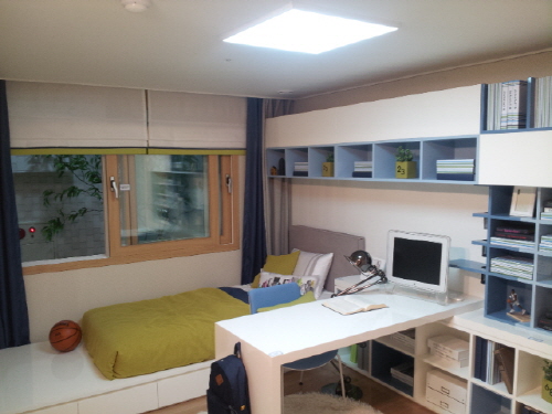 자녀방 1곳에 시공되는 스마트 LED 학습조명 자녀의 학습 환경에 따라 ▲미술과 음악 등에 적합한 감수성 모드(색온도 3000K) ▲휴식에 적당한 일반모드(4000K) ▲국어와 영어 등에 적당한 사고력 모드(5000K) ▲고도의 집중력을 요하는 수학과 과학에 적당한 집중력 모드(6000K) 등 4개의 모드를 골라서 사용할 수 있다.