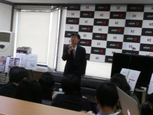 <긴급 브리핑을 진행중인 KT 세일즈 기획단장 이현석 상무>