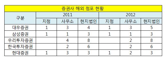 이에 비해 한국투자증권과 현대증권은 지난해 해외점포 적자 규모가 더욱 커졌다.