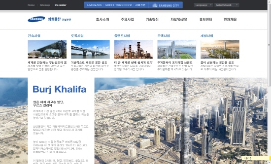 또 홈페이지에 새로 추가된 ‘삼성시티(Samsung City)’도 볼거리다. 삼성시티는 삼성물산 건설부문의 대표 프로젝트 115개가 모인 가상도시를 3D 방식으로 볼 수 있도록 만든 프로그램이다. 따라서 시청각 자료로써의 활용도도 높지만, 프로젝트 정보를 누구나 손쉽게 확인 가능해 정보 공유 측면에서도 뛰어나다는 평이다.
