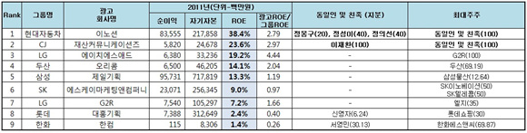 특히 ROE 1,2위 기업들은 동일인 및 친족이 100% 지분을 보유하고 있어 계열사 간 일감 몰아주기가 아니냐는 지적도 비등하다.