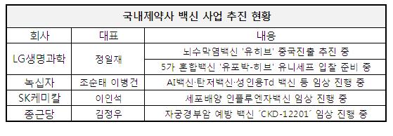 이와 함께 녹십자는 BCG백신(결핵), 재조합 탄저백신, 성인용 Td(파상풍·디프테리아)백신, Tdap(파상풍·디프테라이·백일해)백신 등 차세대 백신도 개발 중이다.