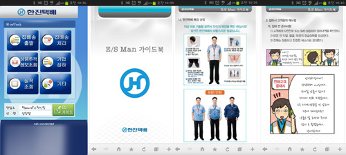 이를 위해 한진택배는 지난 3월부터 직원의 용모와 복장 및 차량 관리는 기본이고 고객 방문 또는 부재 시 행동요령과 같은 구체적인 내용을 담은 스마트폰 어플리케이션 '택배서비스 가이드북'을 배송기사 스마트폰에 설치 완료했다.