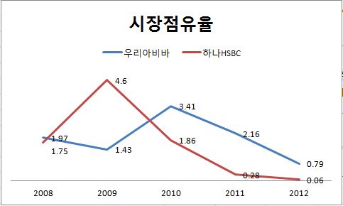 실제 하나HSBC의 경우 출범 첫 해부터 매년 순손실을 내고 있다. 2009년 한 때 적자폭이 2억 원으로 축소되기도 했지만 이후 손실이 급증해 2011년 237억 원의 순손실을 기록했다. 지난해도 회계년도 기준 3분기 누적 순손실이 188억 원에 달해 연간 적자폭은 200억 원을 넘길 전망이다.