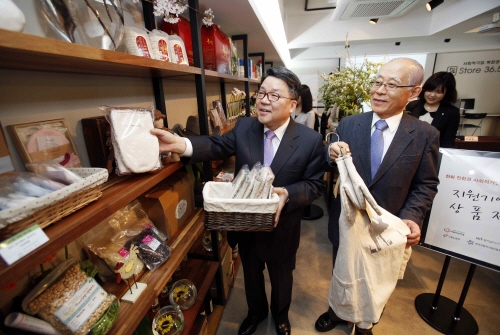 한화는 23일 동작구 사당동에 위치한 사회적기업 상품 전용매장인 ‘스토어 36.5’에서 한화그룹 장일형 사장, 함께일하는재단 이세중 상임이사, 고용노동부 정정식 사회적기업과장, 한국사회적기업진흥원 이대영 기반조성본부장 및 관계자들이 참석한 가운데 친환경 사회적기업 지원사업 협약식을 가졌다.