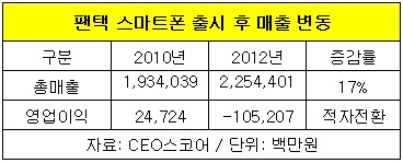 팬텍이 스마트폰시장에서 단말기 가격을 꾸준히 높이며 매출도 회복세를 보이고 있는 반면, 판매량과 영업이익은 감소하는 부진을 보이고 있는 상황이라 '베가 아이언'의 성패여부가 그 어느 때보다 관심을 끈다.