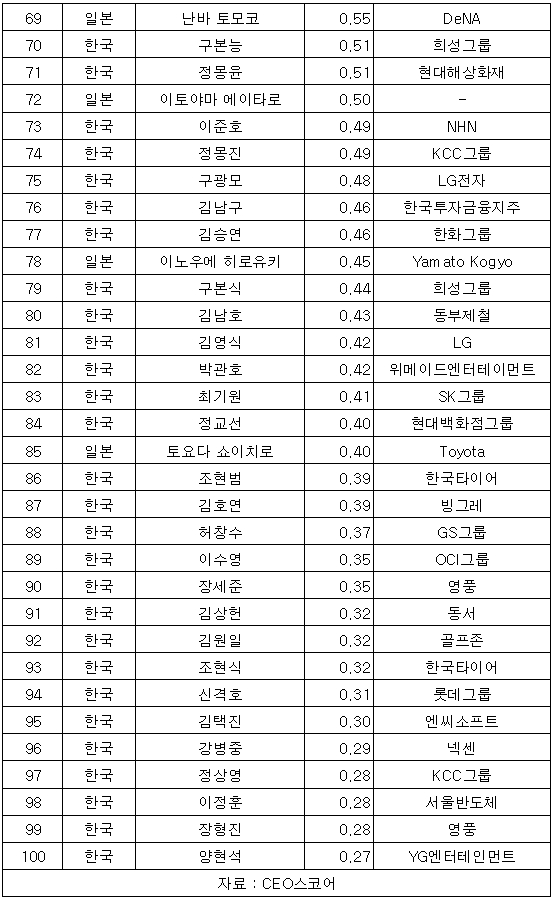 8~10위도 전부 일본 기업인으로 채워졌다.