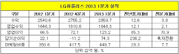 [소비자가만드는신문=김아름 기자] LG유플러스(부회장 이상철)가 올 1분기에 매출과 영업이익이 모두 증가하는 양호한 성적을 냈다.