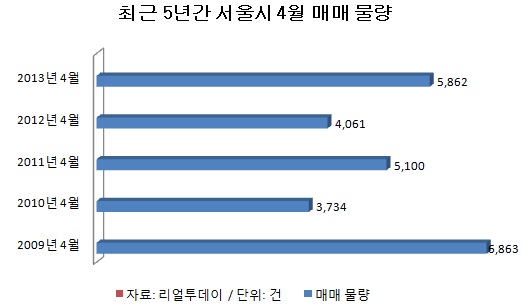 이는 4월 거래건수로는 2009년 6천863건 이후 4년만에 최고치다.