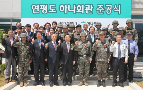김 행장은 이날 이호연 해병대사령관, 김광석 국군복지단장 등 군부대 관계자와 연평도 주민 50여명이 참석한 가운데 연평도 장병과 면회객, 지역주민들이 이용할 민·군 복합 복지시설인 ‘하나회관’ 준공식을 가졌다.