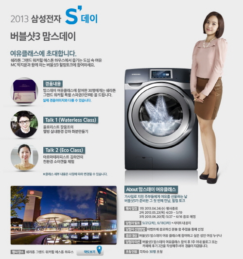삼성전자 관계자는 “지난달에 보내주신 성원처럼 이번에도 많은 관심을 부탁한다”며 “행사에 참여하는 주부들이 버블샷3와 함께 고품격 여유를 즐길 수 있기를 바란다”고 전했다.
