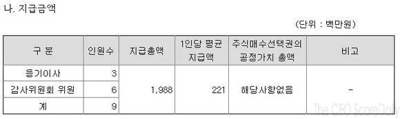 이는 등기이사, 사외이사, 감사위원회 위원, 감사 등으로 구분해 지급금액을 기재하도록 한 기업공시서식 작성기준을 위반한 것이다.