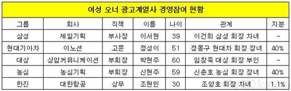 총수의 부인과 딸들이 여성특유의 섬세한 감각을 앞세워 그룹의 광고를 책임지는 사례가 잇따르고 있기 때문이다.
