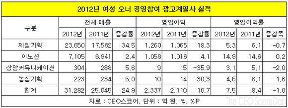 이들의 활약에 힘입어 최근의 경기침체에도 불구하고 해당 광고기획사들은 실적을 개선하거나 외형성장을 유지하는 등 양호한 성적을 내고 있다.