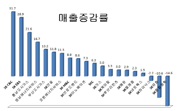 매출이 가장 많이 증가한 곳은 SK C&C(대표 정철길, 205위)였다. SK C&C는 2011년 1조7천18억 원에서 31.7% 증가한 2조2천418억 원의 매출을 기록, SK계열사 중 가장 높은 매출증가율을 기록했다.
