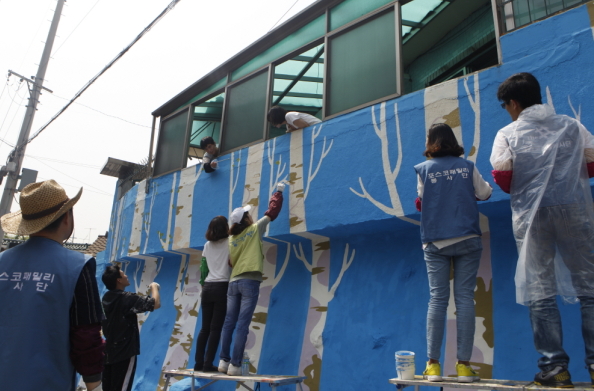 포스코패밀리는 봉사활동 주간인 ‘글로벌 볼런티어 위크(Global Volunteer Week)’를 맞아 첫째날인 25일 인천 동구의 한 주택가에서 행복벽화 그리기를 진행했다.