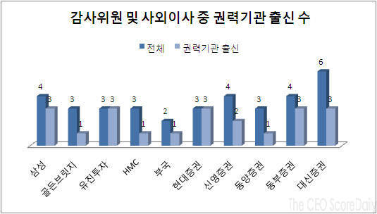 또 대신증권이 6명 가운데 3명, 신영증권이 4명 가운데 2명을 권력기관 출신으로 선임할 예정이다.
