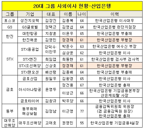 금호에 이어 동부와 한진그룹이 각각 2명의 산업은행 출신 사외이사가 자리를 잡고 있다.