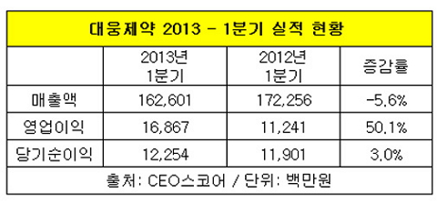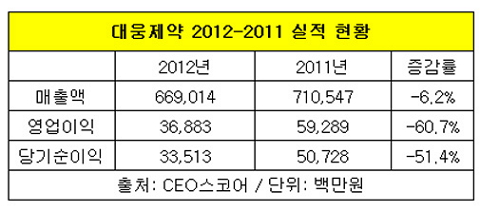 실제로 대웅제약은 지난해 매출과 영업이익이 각각 6.2%, 60.7% 감소하는 극도의 부진을 보였다. 올 1분기에는 영업이익이 50.1% 증가해 수익이 개선된 반면, 매출은 5.6% 줄어 지속적인 매출 부진에 시달리고 있는 상황이다.