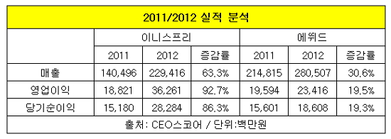 이니스프리의 경우 배당의 주요 기준이 되는 지난해 당기순이익이 전년 대비 86.3% 증가했으나 배당금 증가율은 100%로 이를 크게 웃돌았다.