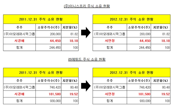 이에 대해 업계 관계자는 "아모레퍼시픽그룹 계열사 가운데 최근 성장세가 가장 가파른 두 회사의 지분을 민정 씨에게 몰아주고 고액 배당을 통해 경영권 승계에 필요한 재산을 쌓으려는 포석일 가능성이 높다"고 설명했다.