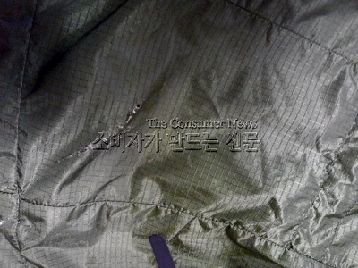 일주일 후 ‘수선불가’라며 되돌아 온 점퍼를 본 김 씨는 기가 막혔다. 제품의 오른팔 부분 처음 손상된 구멍과 이어 무려 15cm가량 찢어진 부분이 두 곳이나 발견됐기 때문.