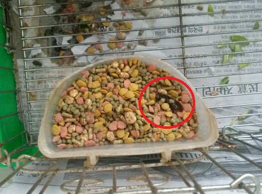 일주일 뒤 평소와 다름없이 사료를 덜어주고 출근하려는데 이상한 것이 눈에 띄었다. 기존 사료보다 큰 이물질이 섞여 있었던 것.