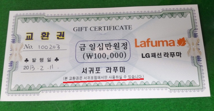 발행일로부터 1년까지 사용할 수 있고 지불한 금액만큼 제품을 교환할 수 있다는 설명에 교환권 10만원짜리 6장을 구입했다. 교환권을 구입한 매장에서만 사용할 수 있지만 유효기간이 넉넉해 안심했다는 김 씨.