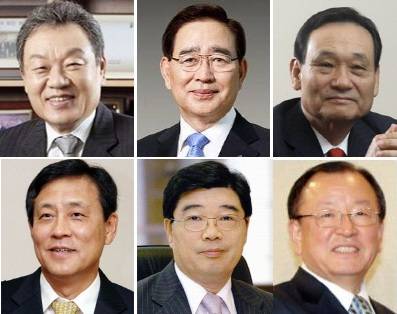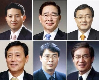 ▲(왼쪽 위에서 시계방향) 어윤대 KB금융지주 회장, 한동우 신한금융지주 회장, 이팔성 전 우리금융지주 회장,