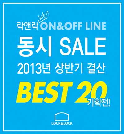 또 락액앤 관계자는 “'2013년 상반기 결산 BEST 20 특별전'을 통해 친환경 신소재로 만든 밀폐용기 ‘비스프리’와 이태리 유명 생활용품 브랜드 ‘똔따렐리’ 바스켓, ‘락앤락 음식물쓰레기통’ 등 올해 1월에서 5월까지 가장 많이 팔린 제품 20품목을 선정해 특별한 가격에 선보일 것”이라고 설명했다.