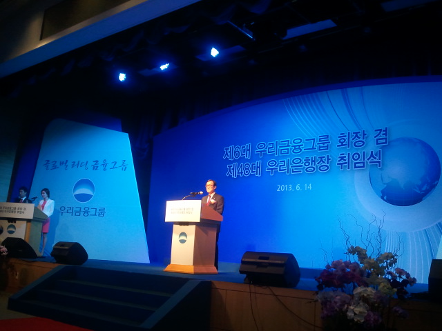 이 회장은 14일 서울 회현동 우리은행 본점에서 진행된 제6대 우리금융지주 회장 겸 제48대 우리은행장 취임식에서 이 같이 밝혔다. 이 회장은 이날 오전 퇴임식을 가진 이팔성 전 회장에 이어 우리금융 민영화와 조직혁신, 리딩뱅크 달성을 진두지휘하게 됐다.