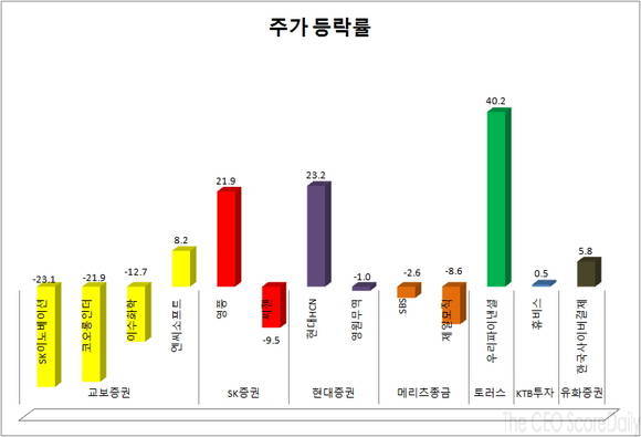 한편, 강력 매수 추천을 받은 종목 가운데 주가가 가장 많이 오른 종목은 토러스투자증권(대표 손복조)이 추천한 우리파이낸셜로 리포트 발간 후 가격이 40.18%나 올랐다. 또 현대증권이 추천한 현대HCN은 23.2%, SK증권이 추천한 영풍은 21.88% 상승했다.