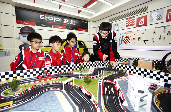 또한, 레이싱 시뮬레이션 게임인 '스피드 마스터'를 즐길 수 있는 체험존을 마련하고 토너먼트 방식으로 운영해 재미를 더한다. 각종 모터스포츠 대회의 공식타이어로 활약중인 금호타이어의 특성을 살려 경기 중 신속, 정확한 타이어 교체의 중요성 등을 배우며 게임을 즐길 수 있도록 했다.