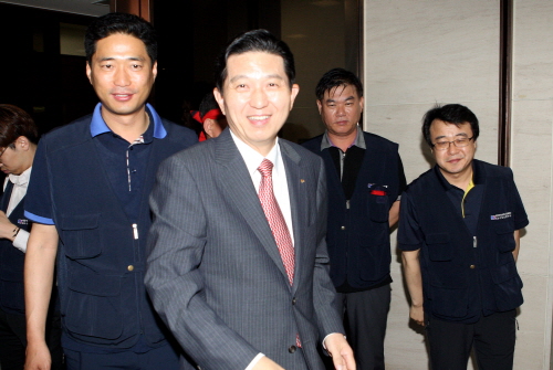 [소비자가만드는신문=윤주애 기자] 임영록 KB금융지주 회장 내정자가 출근 저지 시위를 벌이고 있는 국민은행 노동조합을 찾아 소통에 나섰다. 차기 회장 내정자로 선정되고 지난 7일 첫 출근이 무산된지 11일만의 일이다.