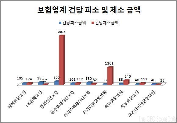소송건수는 LIG손보가 5천90건으로 압도적이었다.