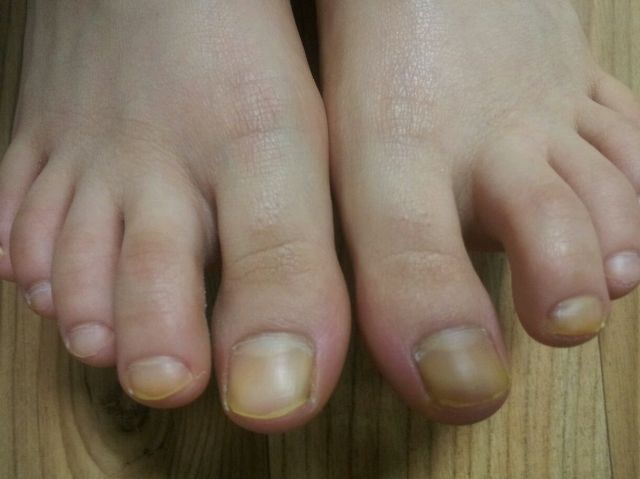 양말을 벗자 발가락과 발톱까지 노란색 물이 든 상태였다. 빗물에 닿은 운동화에서 물이 빠져 이염된 것.