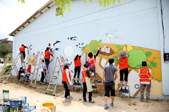 이날 봉사활동은 경기도 포천시 이동면 연곡 4리 제비을마을에서 실시했으며, 벽화 그리기와 함께 마을을 청소했다.