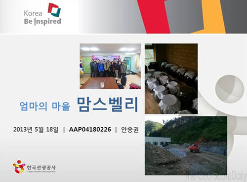 이 마을의 새 농촌 개발 사업은 최근 한국관광공사의 제3회 창조관광사업 공모전 수상작으로 선정됐다.